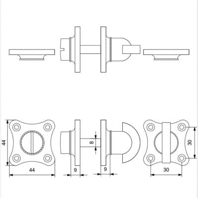 Privacy en stijl gaan perfect samen met dit kwalitatieve toiletgarnituur in zwart smeedijzer. De vierkante rozet heeft een afmeting van 44x44x9 mm. De toiletstift heeft een dikte van 8 mm en een normale knop. De bevestiging van de rozet blijft zichtbaar.