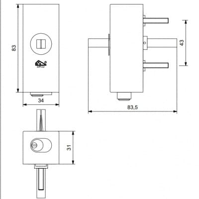 Draaikiepmechanisme afsluitbaar rechthoekigl