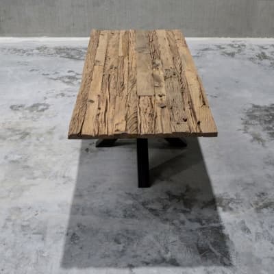 Bij Destijdsch shop je prachtige tafels. Dit blad is gemaakt van oude teakhouten spoorbielsplanken. Het verleden zie je goed terug in het oppervlak van dit blad!