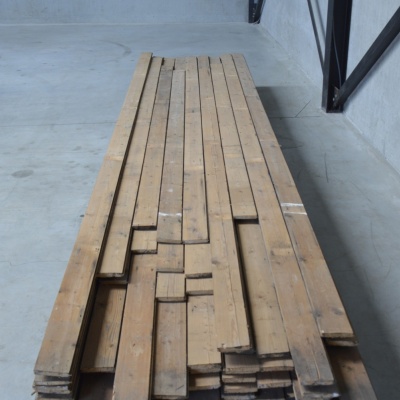 Deze oude grenen planken worden door Destijdsch handmatig uit oude sloopwerken gehaald. Het werd gebruikt als dakbeschot. De planken worden ontspijkerd en klaar gemaakt voor een volgende ronde. Aan de lange zijdes zit een mes en groef. Het hout heeft karakter en duurzamer dan dit kan niet. Zo zie je her en der spijkergaatjes en mooie scheurtjes. De planken zijn eenvoudig te leggen in een vloer of te gebruiken als wand of plafond.