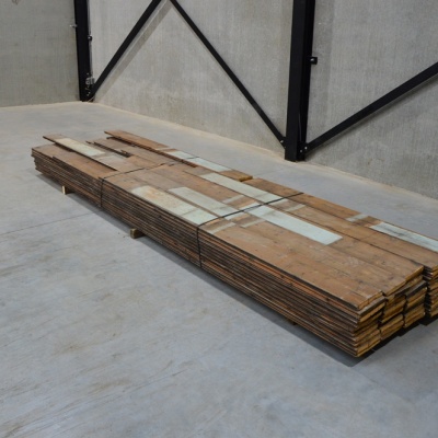 Deze oude grenen planken worden door Destijdsch handmatig uit oude sloopwerken haalt. Het werd gebruikt als dakbeschot of als vloer. De planken worden ontspijkerd en klaar gemaakt voor een volgende ronde. Aan de lange zijdes zit een mes en groef. Het hout heeft karakter en duurzamer dan dit kan niet. Zo zie je her en der spijkergaatjes en mooie scheurtjes. De planken zijn eenvoudig te leggen in een vloer of te gebruiken als wand of plafond.