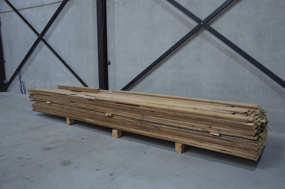 Deze oude grenen planken worden door Destijdsch handmatig uit oude sloopwerken gehaald. Het werd gebruikt als dakbeschot. De planken worden ontspijkerd en klaar gemaakt voor een volgende ronde. Aan de lange zijdes zit een mes en groef. Het hout heeft karakter en duurzamer dan dit kan niet. Zo zie je her en der spijkergaatjes en mooie scheurtjes. De planken zijn eenvoudig te leggen in een vloer of te gebruiken als wand of plafond.