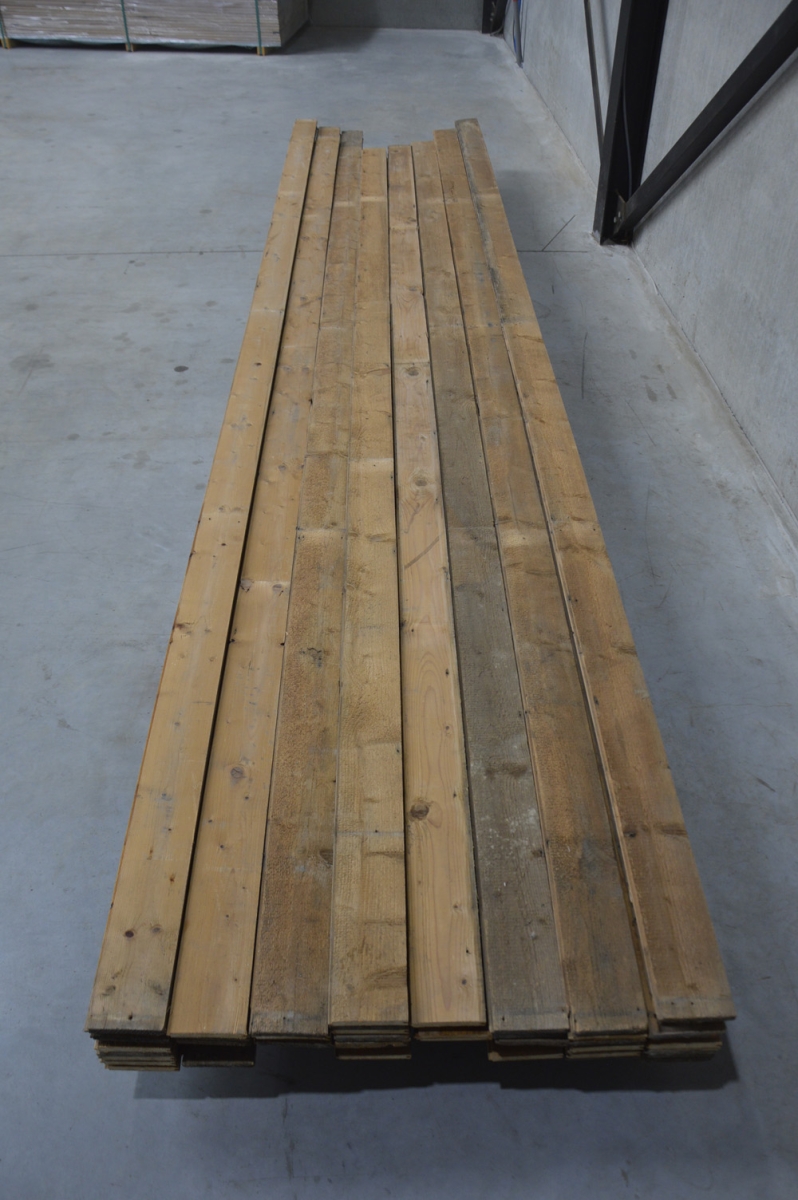 Deze oude grenen planken worden door Destijdsch handmatig uit oude sloopwerken gehaald. Het werd gebruikt als dakbeschot. De planken worden ontspijkerd en klaar gemaakt voor een volgende ronde. Aan de lange zijdes zit een mes en groef. Het hout heeft karakter en duurzamer dan dit kan niet. Zo zie je her en der spijkergaatjes en mooie scheurtjes. De planken zijn eenvoudig te leggen in een vloer of te gebruiken als wand of plafond.