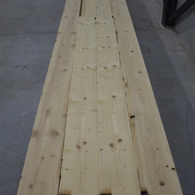 Deze planken worden gezaagd uit oude balken die Destijdsch uit oude sloopwerken haalt. De balken worden ontspijkerd en vervolgens gezaagd tot planken. Aan de lange zijdes zit een mes en groef. In feite zijn het dus nieuwe planken geworden, maar met het karakter van een oude plank. Zo zie je her en der spijkergaatjes en mooie scheurtjes. De planken zijn eenvoudig te leggen in een vloer of te gebruiken als wand of plafond. Eén zijde is geschaafd (foto 1) en de andere zijde is fijnbezaagd (foto 2).