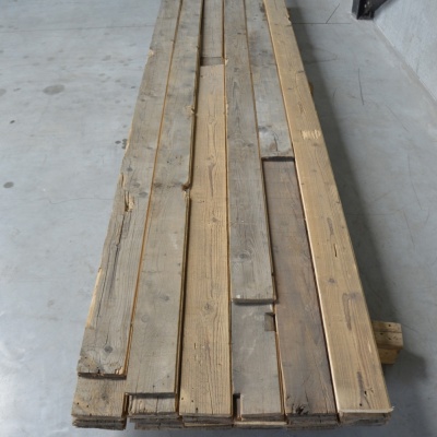 Deze planken worden gezaagd uit oude balken die Destijdsch uit oude sloopwerken haalt. De balken worden ontspijkerd en vervolgens gezaagd tot planken. Aan de lange zijdes zit een mes en groef. In feite zijn het dus nieuwe planken geworden, maar met het karakter van een oude plank. Zo zie je her en der spijkergaatjes en mooie scheurtjes. 1 zijde heeft nog de oude buitenkant van de balk en de andere zijde is geschaafd. De planken zijn eenvoudig te leggen in een vloer of te gebruiken als wand of plafond.