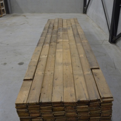 Deze oude grenen planken worden door Destijdsch handmatig uit oude sloopwerken gehaald. Het werd gebruikt als dakbeschot. De planken worden ontspijkerd en klaar gemaakt voor een volgende ronde. Aan de lange zijdes zit een mes en groef. Het hout heeft karakter en duurzamer dan dit kan niet. Zo zie je her en der spijkergaatjes en mooie scheurtjes. De planken zijn eenvoudig te leggen in een vloer of te gebruiken als wand of plafond.