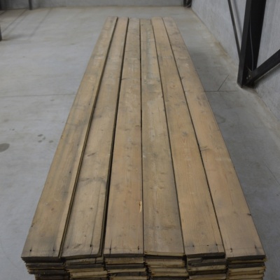 Deze oude grenen planken worden door Destijdsch handmatig uit oude sloopwerken gehaald. Het werd gebruikt als dakbeschot. De planken worden ontspijkerd en klaar gemaakt voor een volgende ronde. Aan de lange zijdes zit een mes en groef. Het hout heeft karakter en duurzamer dan dit kan niet. Zo zie je her en der spijkergaatjes en mooie scheurtjes. De planken zijn eenvoudig te leggen in een vloer of te gebruiken als wand of plafond.