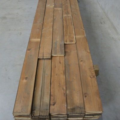 Deze oude grenen planken worden door Destijdsch handmatig uit oude sloopwerken gehaald. Het werd gebruikt als dakbeschot. De planken worden ontspijkerd en klaar gemaakt voor een volgende ronde. Aan de lange zijdes zit een mes en groef. Het hout heeft karakter en duurzamer dan dit kan niet. Zo zie je her en der spijkergaatjes en mooie scheurtjes. De planken zijn eenvoudig te leggen in een vloer of te gebruiken als wand of plafond.