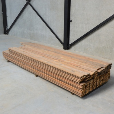 Deze oude grenen planken worden door Destijdsch handmatig uit oude sloopwerken gehaald. Het werd gebruikt als dakbeschot. De planken worden ontspijkerd en klaar gemaakt voor een volgende ronde. Aan de lange zijdes zit een mes en groef. Het hout heeft karakter en duurzamer dan dit kan niet. Zo zie je her en der spijkergaatjes en mooie scheurtjes. De planken zijn eenvoudig te leggen in een vloer of te gebruiken als wand of plafond.