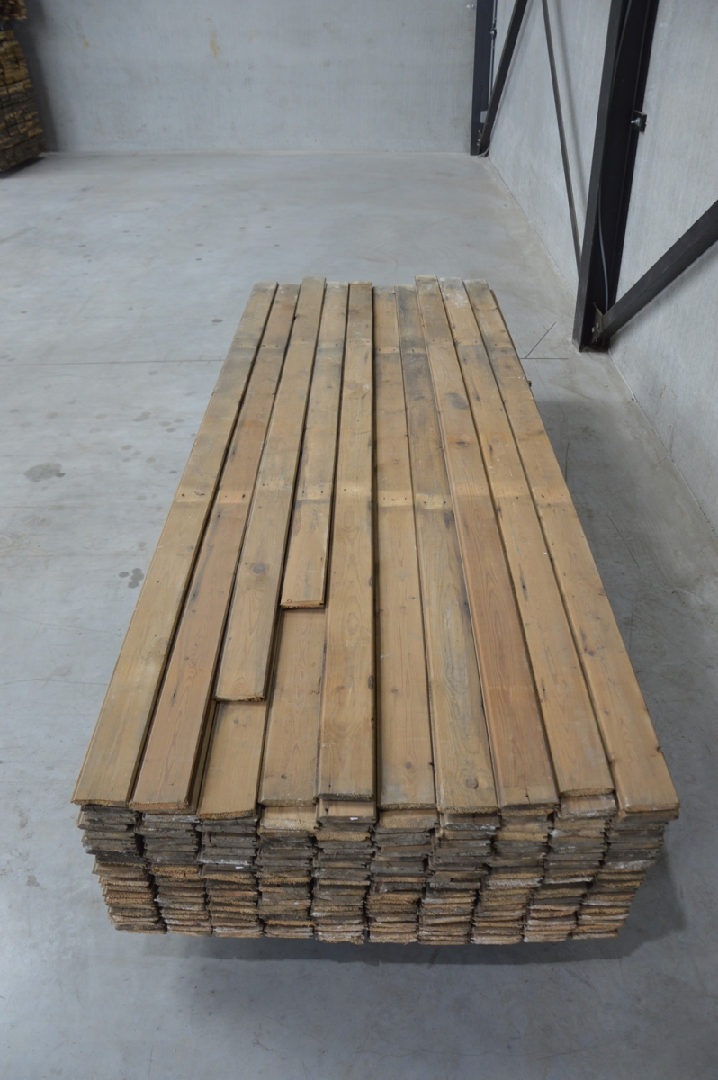 Deze oude grenen planken worden door Destijdsch handmatig uit oude sloopwerken gehaald. Het werd gebruikt als dakbeschot. De planken worden ontspijkerd en klaar gemaakt voor een volgende ronde. Aan de lange zijdes zit een mes en groef. Het hout heeft karakter en duurzamer dan dit kan niet. Zo zie je her en der spijkergaatjes en mooie scheurtjes. De planken zijn eenvoudig te leggen in een vloer of te gebruiken als wand of plafond.