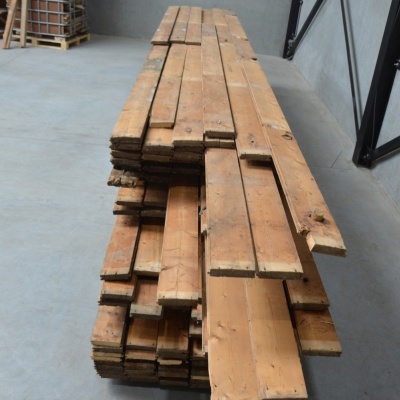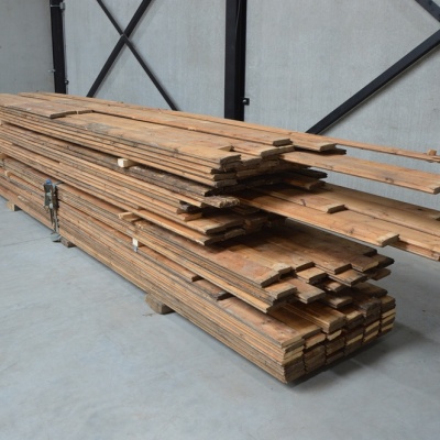 Deze planken worden door Destijdsch uit oude sloopwerken gehaald. De planken worden ontspijkerd en klaargemaakt voor een volgende ronde. Aan de lange zijdes zit een mes en groef. Ons hout heeft karakter en duurzamer kan niet. Zo zie je her en der spijkergaatjes en mooie scheurtjes. De planken zijn eenvoudig te leggen als vloer of te gebruiken als wand of plafond.