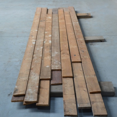 Deze planken worden door Destijdsch uit oude sloopwerken gehaald. De planken worden ontspijkerd en klaargemaakt voor een volgende ronde. Aan de lange zijdes zit een mes en groef. Ons hout heeft karakter en duurzamer kan niet. Zo zie je her en der spijkergaatjes en mooie scheurtjes. De planken zijn eenvoudig te leggen als vloer of te gebruiken als wand of plafond.