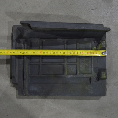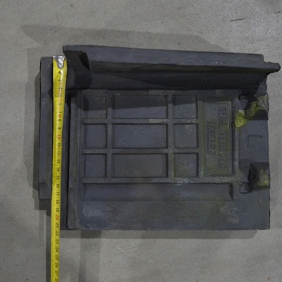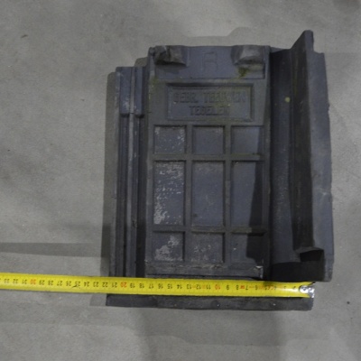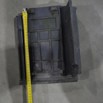 Nette oude Tuile du Nord gevelpannen van fabrikant Gebr. Teeuwen met een vlakke wel. De kleur is blauwgesmoord.