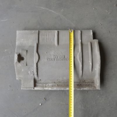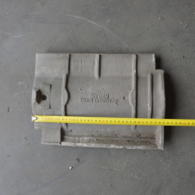 Nette VH (verbeterde Hollandse) dakpannen. De kleur is blauwgesmoord. Fabrikant Jac Laumans.