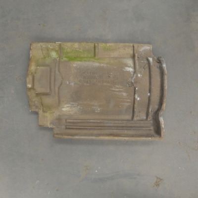 Oude verbeterde Romeinse dakpannen. Deze pan lijkt qua vorm veel op een verbeterde Hollandse dakpan. De kleur is bruingrijs met een nuance naar blauwgesmoord. Fabrikant: De Valk Meeuwissen