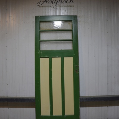 Oude Bruynzeel zesvaks paneeldeur met 3 ruitjes