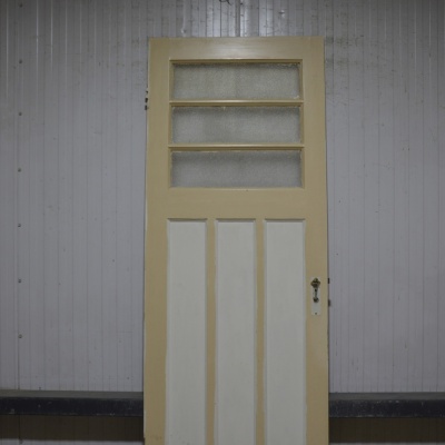 Oude Bruynzeel zesvlaks paneeldeur met 3 ruitjes