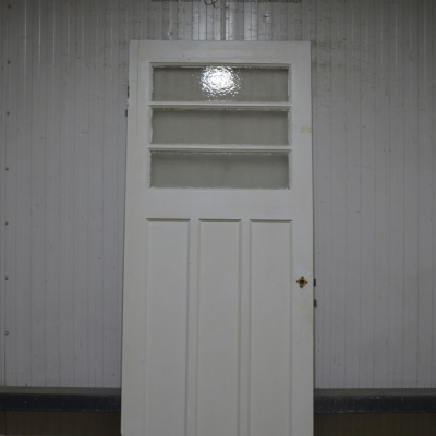 Oude Bruynzeel zesvlaks paneeldeur met 3 ruitjes