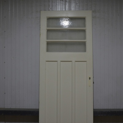 Oude Bruynzeel zesvlaks paneeldeur met 3 ruitjes
