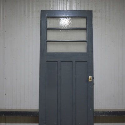 Oude Bruynzeel zesvlaks paneeldeur met 3 ruitjes