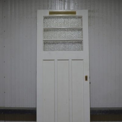 Oude Bruynzeel zesvlaks paneeldeur met 3 ruitjes