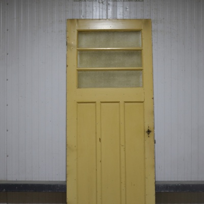 Oude Bruynzeel zesvlaks paneeldeur met 3 ruitjes
