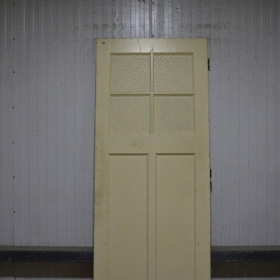 Oude Bruynzeel drievaks paneeldeur met ruitjes