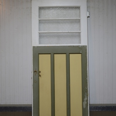Oude Bruynzeel zesvaks paneeldeur met 3 ruitjes