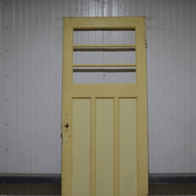 Oude Bruynzeel zesvlaks paneeldeur met 3 ruitjes