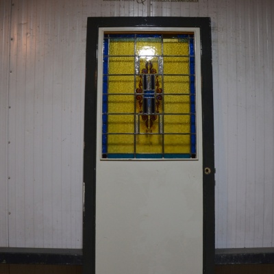 Oude paneeldeur met glas in lood