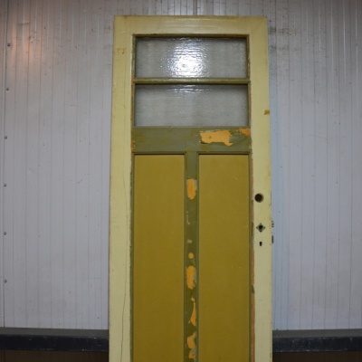 Oude paneeldeur met glas