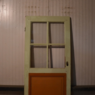 Oude paneeldeur met glas