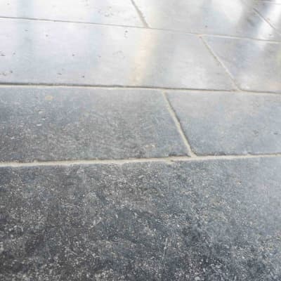 De kanten van deze tegels zijn verouderd, wat een rustieke uitstraling geeft aan de tegel. Doordat de tegels zijn gezoet, kleurt het oppervlak blauw waardoor diverse aspecten zoals bijennesten en aders van de steen meer geaccentueerd worden. Deze tegels zijn geschikt voor vloerverwarming en zeer onderhoudsvriendelijk. De dikte van de tegel is 2 cm.