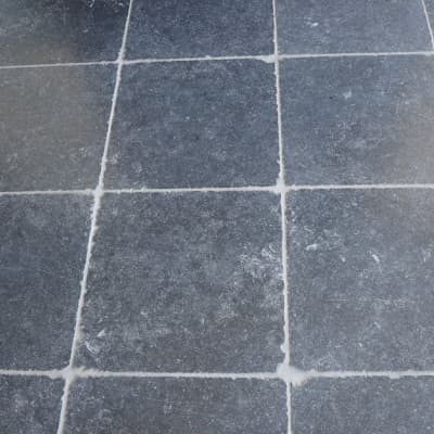 De zijkanten van deze tegels zijn licht verouderd en het oppervlak van de natuurstenen vloer is daardoor is fijn gewolkt. Doordat de tegels zijn verzoet waarbij de tegels met een diamant wordt bewerkt, kleurt het oppervlak diepblauw waardoor diverse aspecten zoals bijennesten en aders in de steen meer geaccentueerd worden. Prijs is per vierkante meter. Deze tegels zijn geschikt voor vloerverwarming en zeer onderhoudsvriendelijk. De dikte van de tegel is 2 cm.