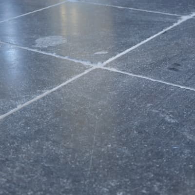 De zijkanten van deze tegels zijn licht verouderd en het oppervlak van de natuurstenen vloer is daardoor is fijn gewolkt. Doordat de tegels zijn verzoet waarbij de tegels met een diamant wordt bewerkt, kleurt het oppervlak diepblauw waardoor diverse aspecten zoals bijennesten en aders in de steen meer geaccentueerd worden. Prijs is per vierkante meter. Deze tegels zijn geschikt voor vloerverwarming en zeer onderhoudsvriendelijk. De dikte van de tegel is 2 cm.